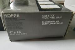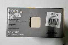 Suggested Retail:$25. ROPPE Vinyl Self Stick Almond 4 in. x 0.080 in. x 20 ft. Wall Cove Base Coil. The ROPPE 20 ft. x 4 in. x 5/64 in. Almond Vinyl Self-Stick Wall Base Moulding is made to resist shrinking and separating from walls to help maintain a smooth and attractive appearance. Low cost and good looks highlight ROPPE's Vinyl Base. It's extremely durable without sacrificing attractiveness, and very economical because it's made from PVC vinyl. 7 DAY FULL REFUND GUARANTEE ON THIS ITEM IF ANY ISSUE IS FOUND THAT WAS NOT DESCRIBED/PICTURED. PAID DELIVERY AND 7 DAY ALTERNATE PICK-UP ALSO AVAILABLE. SEE NOTES TO BIDDER, IN AUCTION DETAILS, AT THE TOP OF PAGE 1 FOR MORE INFO.