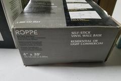 Suggested Retail:$25. ROPPE Vinyl Self Stick Almond 4 in. x 0.080 in. x 20 ft. Wall Cove Base Coil. The ROPPE 20 ft. x 4 in. x 5/64 in. Almond Vinyl Self-Stick Wall Base Moulding is made to resist shrinking and separating from walls to help maintain a smooth and attractive appearance. Low cost and good looks highlight ROPPE's Vinyl Base. It's extremely durable without sacrificing attractiveness, and very economical because it's made from PVC vinyl. 7 DAY FULL REFUND GUARANTEE ON THIS ITEM IF ANY ISSUE IS FOUND THAT WAS NOT DESCRIBED/PICTURED. PAID DELIVERY AND 7 DAY ALTERNATE PICK-UP ALSO AVAILABLE. SEE NOTES TO BIDDER, IN AUCTION DETAILS, AT THE TOP OF PAGE 1 FOR MORE INFO.