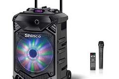 View on LOZ Suggested Retail: $199.99. Shinco Bluetooth Karaoke Speaker, 12-inch Subwoofer PA System, Portable Karaoke Machine with Wireless Microphone, Flashing Party Light. Portable and Powerful -- This Bluetooth speaker system with 12-inch subwoofer provide strong bass and dynamic sound for indoor and outdoor party. It allows you to project your voice and music across a group of 500 people clearly and loudly, the sound coverage reaches up to 6000 square meters. Easy to Use -- Wireless Microphone and speaker will connect automatically when turned on, no further operation is required. You are free to adjust the microphone and music volume separately. It also has a retractable handle and wheels for easy transport.. 7 CALENDAR DAY FULL REFUND GUARANTEE ON THIS ITEM IF ANY ISSUE IS FOUND THAT WAS NOT DESCRIBED/PICTURED. 7 CALENDAR DAY STORAGE IS ALSO AVAILABLE. SEE NOTES TO BIDDER, IN AUCTION DETAILS, AT THE TOP OF PAGE 1 FOR MORE INFO.