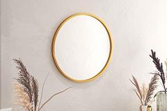 View on LOZ Suggested Retail: $94.99. Gold Circle Wall Mirror 20 Inch Round Wall Mirror for Entryways, Washrooms, Living Rooms and More (Gold, 20''). Our stunning gold mirror is a wall hanging mirror, and is handcrafted with care and attention to both detail and design. High quality metals and mirror materials are used to guarantee the sturdiness and consistent aesthetic beauty of the design. Our mirrors are silver-backed, presenting a beautiful reflection every time. The classy gold finish really stands out making any wall look incredible!. 7 CALENDAR DAY FULL REFUND GUARANTEE ON THIS ITEM IF ANY ISSUE IS FOUND THAT WAS NOT DESCRIBED/PICTURED. 7 CALENDAR DAY STORAGE IS ALSO AVAILABLE. SEE NOTES TO BIDDER, IN AUCTION DETAILS, AT THE TOP OF PAGE 1 FOR MORE INFO.