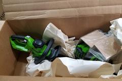 Suggested Retail:$118. Greenworks 24-Inch 40V Cordless Hedge Trimmer, 2.0 AH Battery Included 22262. Greenworks GMAX 40-Volt 2.0 Amp Hour Lithium-Ion 24-Inch Hedge Trimmer, Includes Battery and Charger, Model No.22262.. 7 DAY FULL REFUND GUARANTEE ON THIS ITEM IF ANY ISSUE IS FOUND THAT WAS NOT DESCRIBED/PICTURED. 7 DAY STORAGE IS ALSO AVAILABLE. SEE NOTES TO BIDDER, IN AUCTION DETAILS, AT THE TOP OF PAGE 1 FOR MORE INFO.