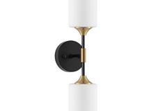Suggested Retail: $70. BYOLIIMA - 19.3"L Industrial Mid Century 2-Lights Wall Sconce with White Cylinder Glass Shades and Matte Black Gold Brushed Brass Finish This luxury wall sconce features a durable metal construction, ensuring long-term use. With a chic Mid Century design, it can be hard wired and mounted to face either up or down. Ideal for various indoor applications such as bathrooms, kitchens, and living rooms, the sconce adds a touch of elegance to any space. The fixture is compatible with multiple bulb types, providing flexibility and dimming options for the perfect lighting effect. Brand: BYOLIIMA. [Reference: bFb0HFk80yFcdFmhoOGkOX]. LOT STICKER: OH002.11-00000044-18. Type: Regular. Color: Black, Gold, White. 7 CALENDAR DAY FULL REFUND GUARANTEE (FROM PRIMARY PICKUP DATE) ON THIS ITEM IF ANY ISSUE IS FOUND THAT WAS NOT DESCRIBED/PICTURED. 7 CALENDAR DAY STORAGE (FROM PRIMARY PICKUP DATE) IS ALSO AVAILABLE. THE PRIMARY PICKUP DATE IS THE DAY AFTER THE AUCTION ENDS. SEE NOTES TO BIDDER, IN AUCTION DETAILS, AT THE TOP OF PAGE 1 FOR MORE INFO.