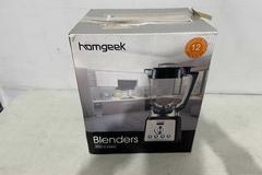 View on LOZ Suggested Retail: $54.99. . Homgeek NY-8188MJB Plus Blender 1450 Watt,2L Container,with 8 Adjustable Speeds for Smoothies,Chop,Grind. With the powerful pure copper motor of 1450W, the speed is up to 30,000 RPM, the professional smoothie maker can help you quickly get the deliciousness you need. 8 German stainless steel blades quickly crush, no large lumps of ingredients left. This smoothie blenders offers 8 adjustable speed and 4 preset programs, which can achieve versatile blending features, you can crushing ice, grinding nuts, grains and coffee beans, making smoothies and shakes in a few seconds.The powerful pro blender can break cell walls of food to release the nutrition 100% completely in seconds, make both healthy nutritious and delicious drinks that can help you younger-looking skin, lose weight, promote healthy. 7 CALENDAR DAY FULL REFUND GUARANTEE ON THIS ITEM IF ANY ISSUE IS FOUND THAT WAS NOT DESCRIBED/PICTURED. 7 CALENDAR DAY STORAGE IS ALSO AVAILABLE. SEE NOTES TO BIDDER, IN AUCTION DETAILS, AT THE TOP OF PAGE 1 FOR MORE INFO.