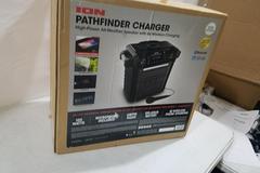 Suggested Retail:$96. Ion Audio Pathfinder Charger, Bluetooth Portable Speaker with Wireless Qi Charging. Up to 100-hour rechargeable battery for non-stop fun. Wireless Qi charging panel for convenient charging. 100-watt peak power amplifier pumps up the volume. Rugged IPX5 water-resistant enclosure – okay to leave in the rain! USB port for charging your smartphone. 7 DAY FULL REFUND GUARANTEE ON THIS ITEM IF ANY ISSUE IS FOUND THAT WAS NOT DESCRIBED/PICTURED. 7 DAY STORAGE IS ALSO AVAILABLE. SEE NOTES TO BIDDER, IN AUCTION DETAILS, AT THE TOP OF PAGE 1 FOR MORE INFO.